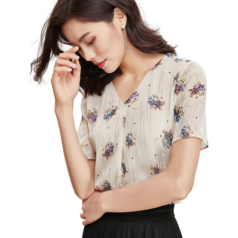 zked2024夏季新款真丝上衣女职业高档时尚气质显瘦衬衣桑蚕丝短袖衬衫