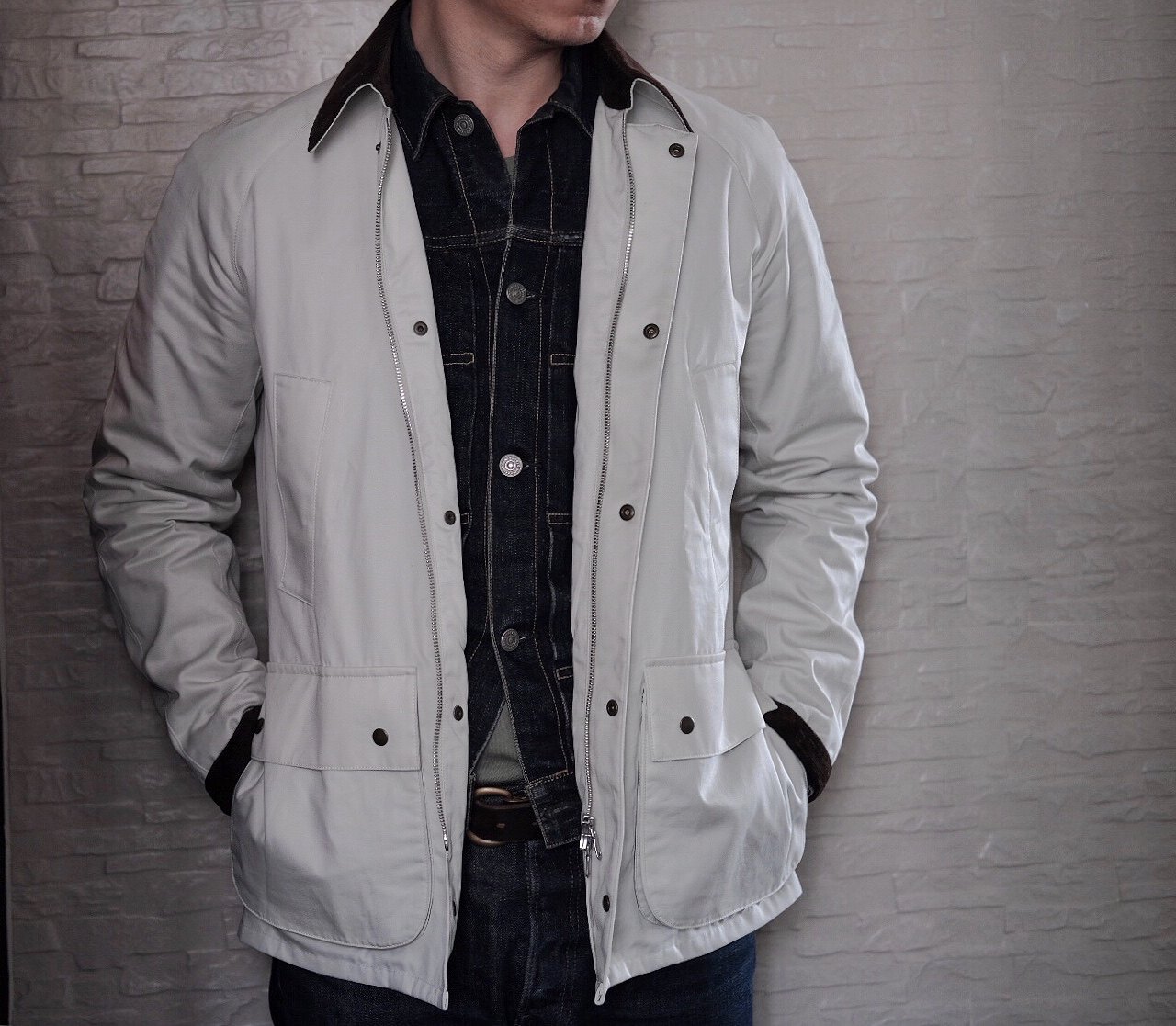 无蜡防水面料ashby版型复古猎装夹克水洗修身夹克