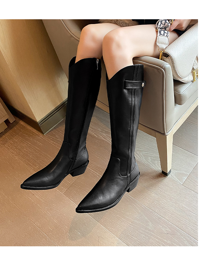 粗跟中长靴高跟磨砂皮长筒冬季新款侧拉链高筒靴女靴子女鞋春秋季
