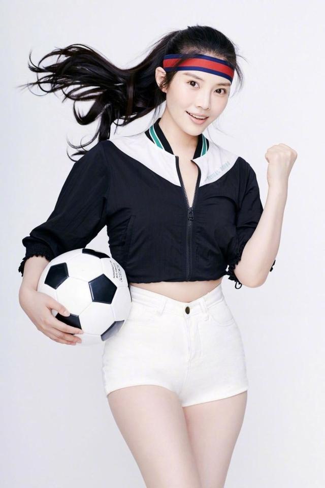 乒乓球的牛仔短裤搭配红色短袖徐冬冬变身足球宝贝