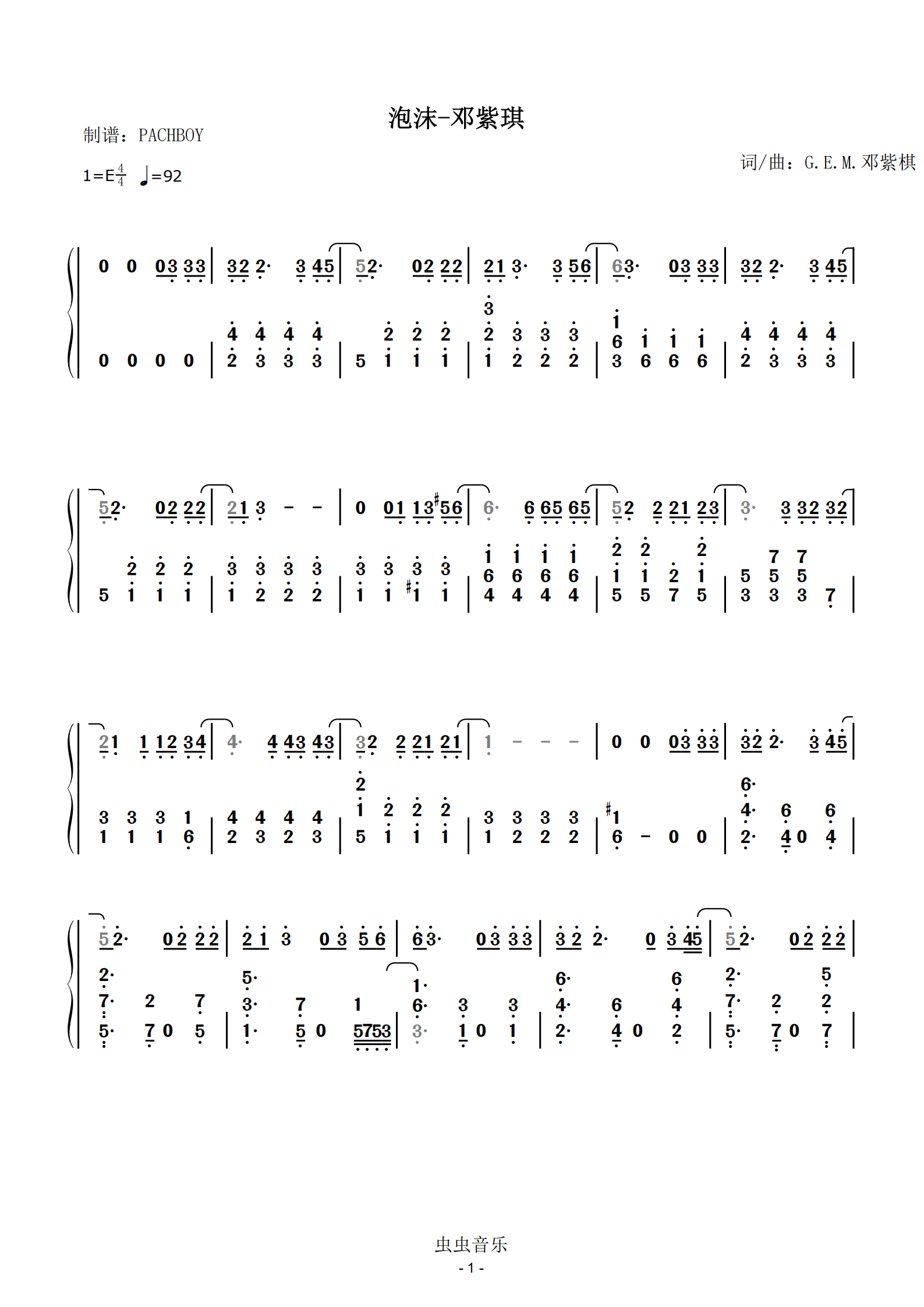 泡沫简谱-邓紫棋演唱-孙世彦制谱2