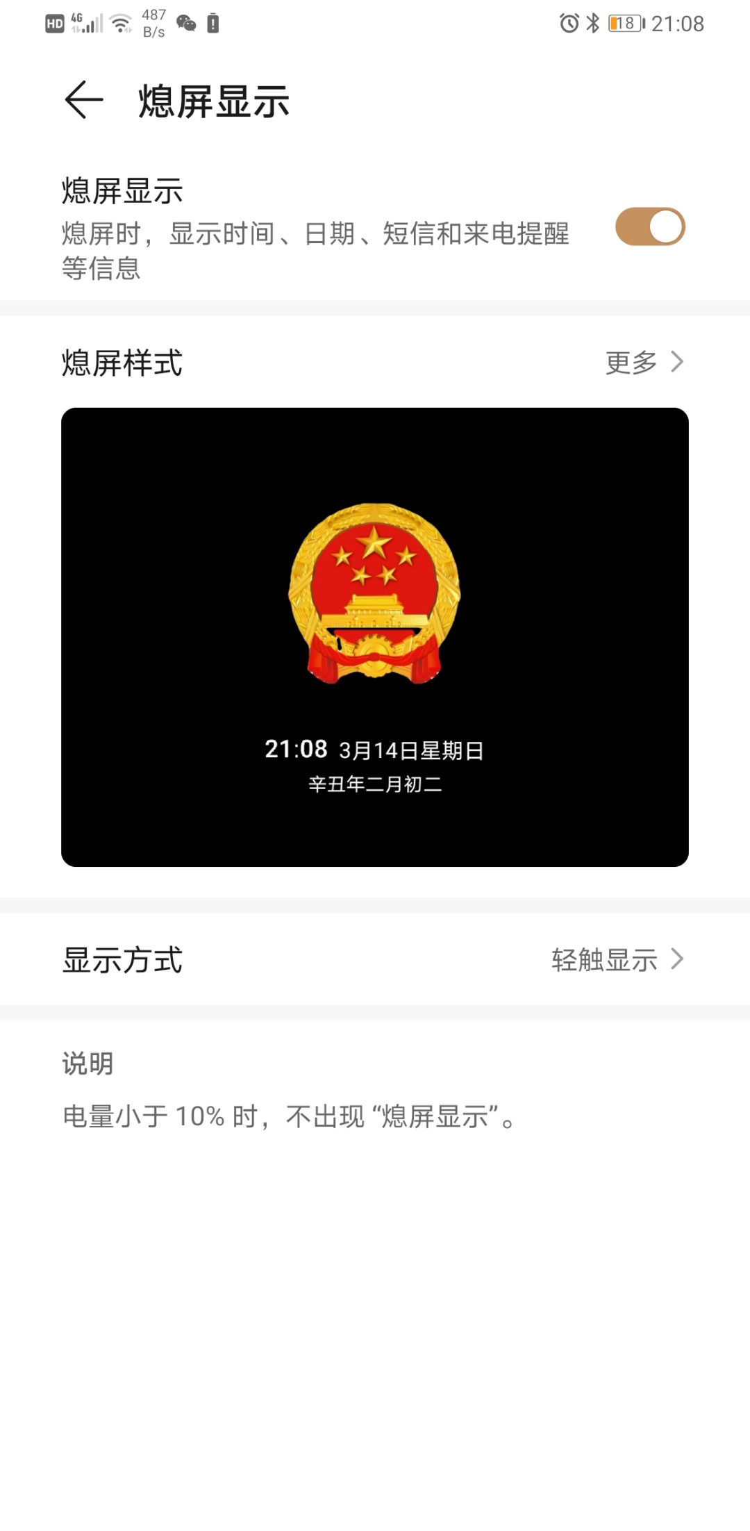 最近很火的华为手机专属"国徽"熄屏显示