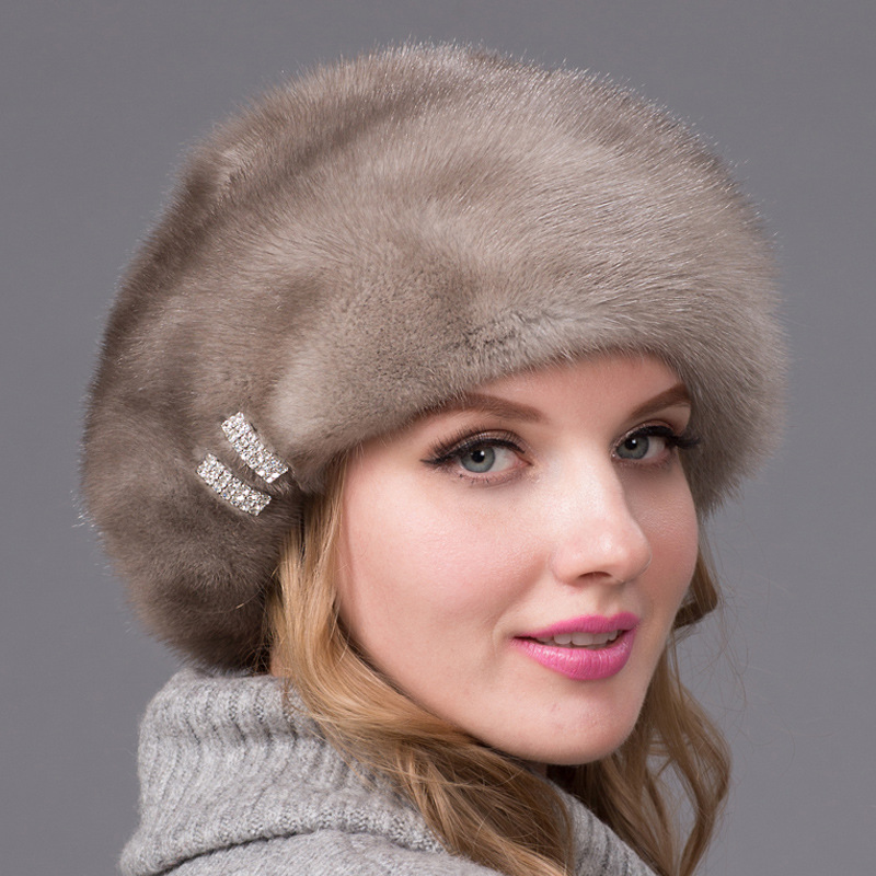 贝雷帽女冬季新款整皮水貂毛户外休闲保暖气质皮草貂皮帽子