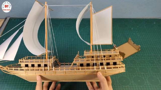 达人用纸板制作三桅古帆船玩具模型这手工强不强
