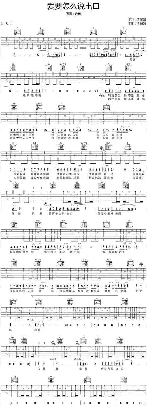 爱要怎么说出口吉他谱赵传c调超原版编配
