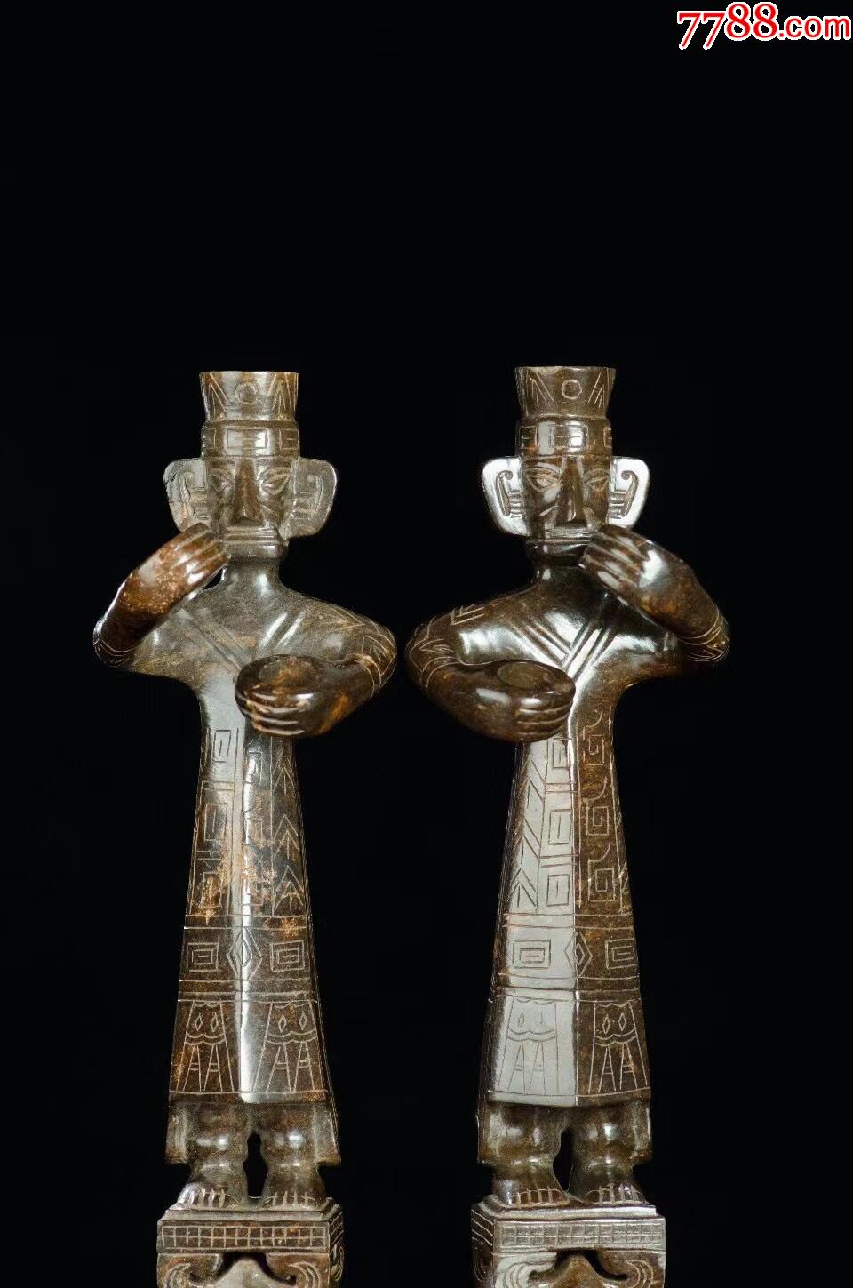 高古玉三星堆人首尺寸:高12cm宽15cm重881g
