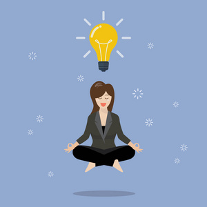 蓝天白云下一个正坐在灯泡里思考的女人自闭症日