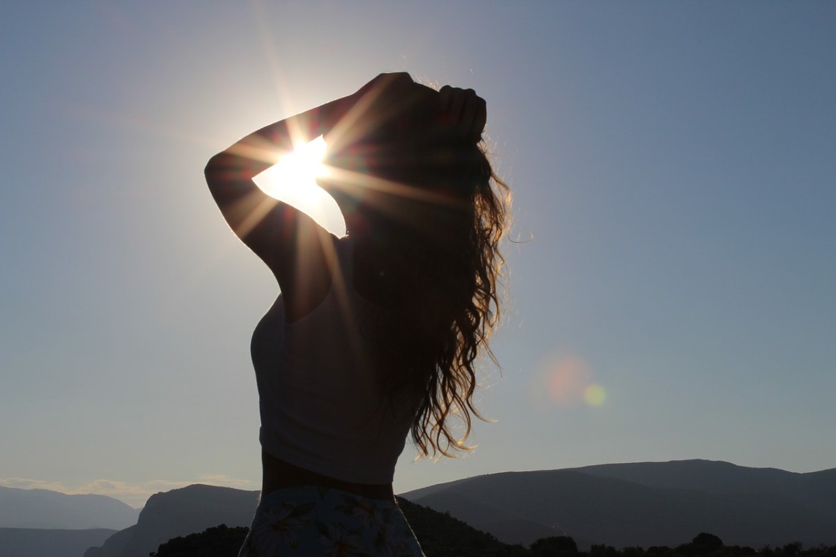 面向阳光的女孩图片
