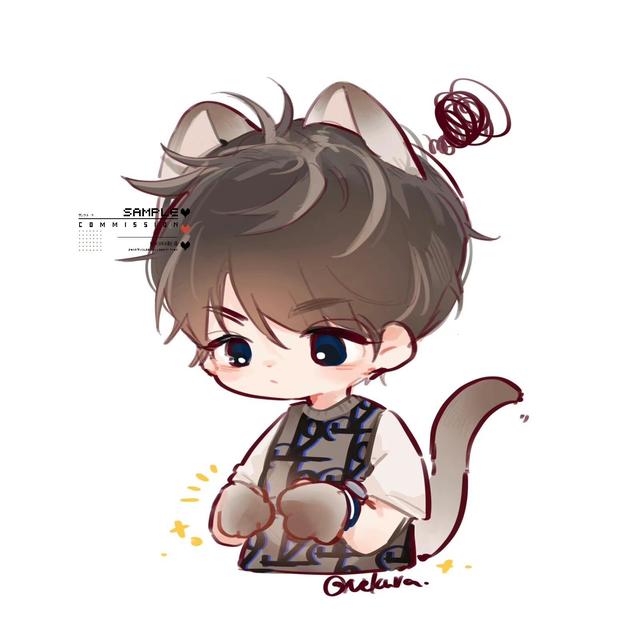 粉丝手绘王俊凯q版动漫形象 毛茸茸的猫儿不要太可爱