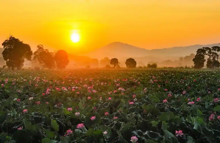 日出荷花图片