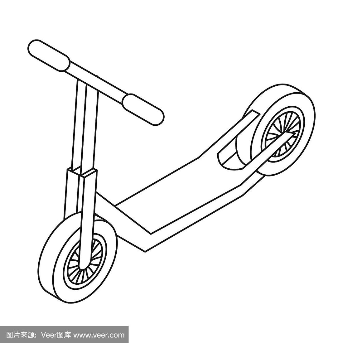 滑板车图标在轮廓风格孤立在白色