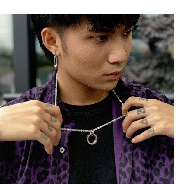 zishe刘耀文同款钛钢双环男生项链简约个性百搭时尚学生ins潮吊坠