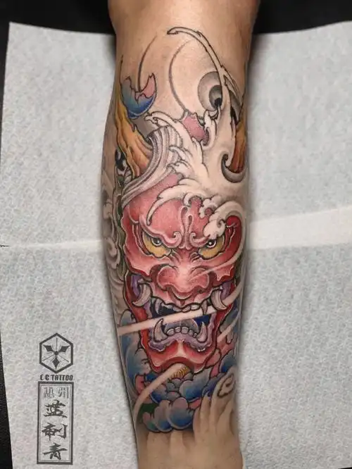 小腿般若作品 #蓝刺青纹身基地 #文身图案 #刺青纹身