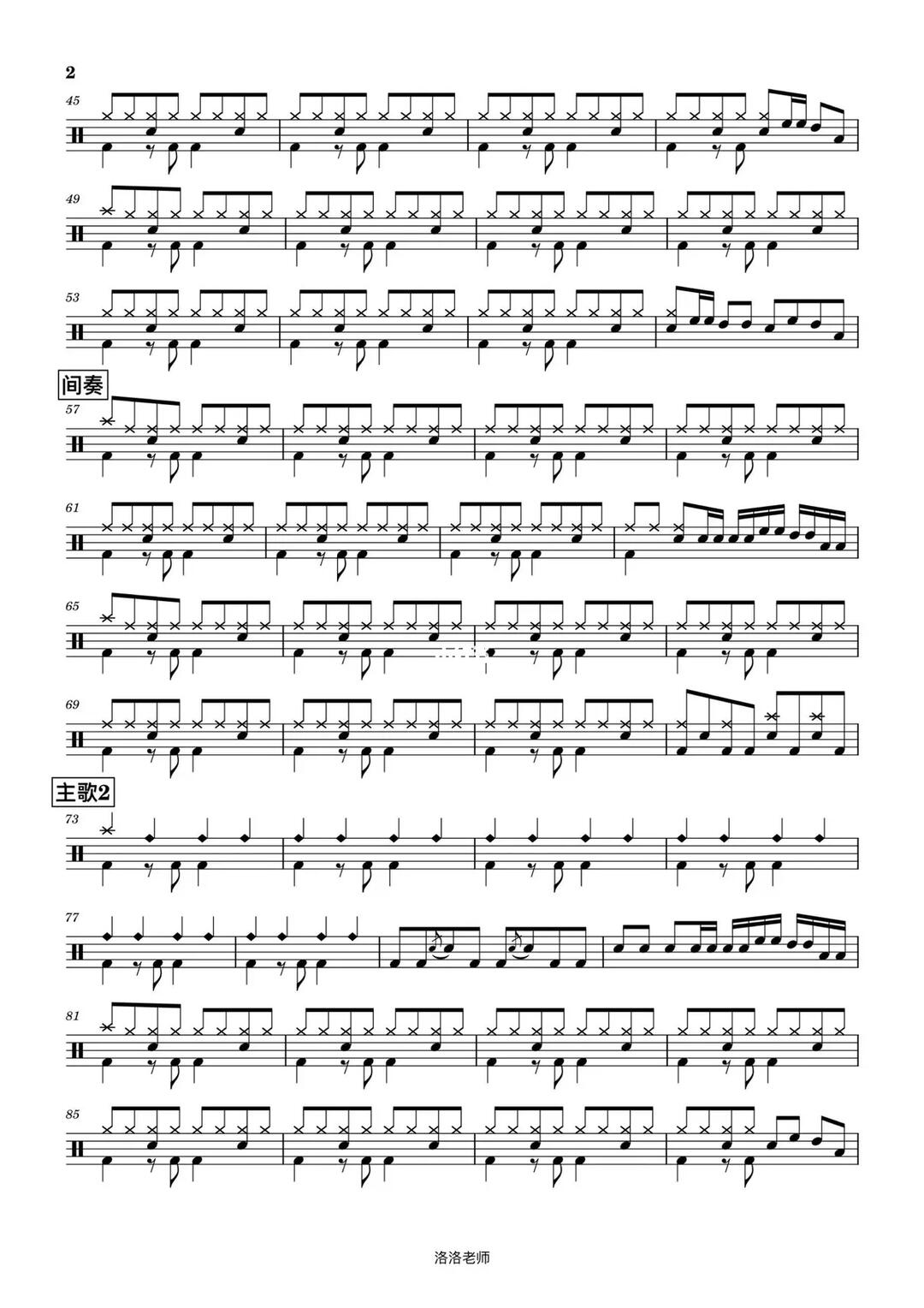 beyond乐队不再犹豫鼓谱架子鼓谱