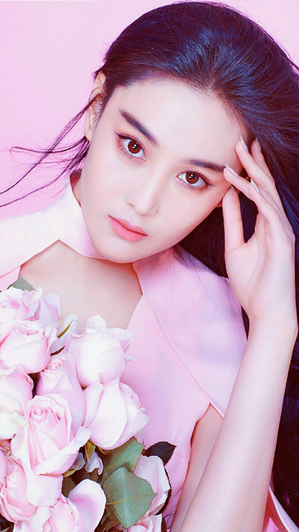 张馨予柔美粉色西装,高清图片,手机锁屏桌面-壁纸族
