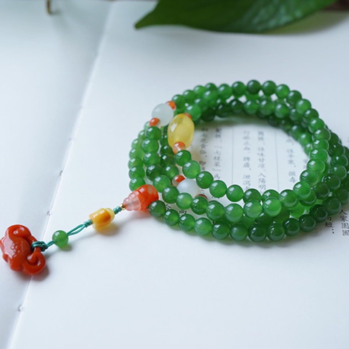 天然绿玛瑙108颗佛珠手链6mm
