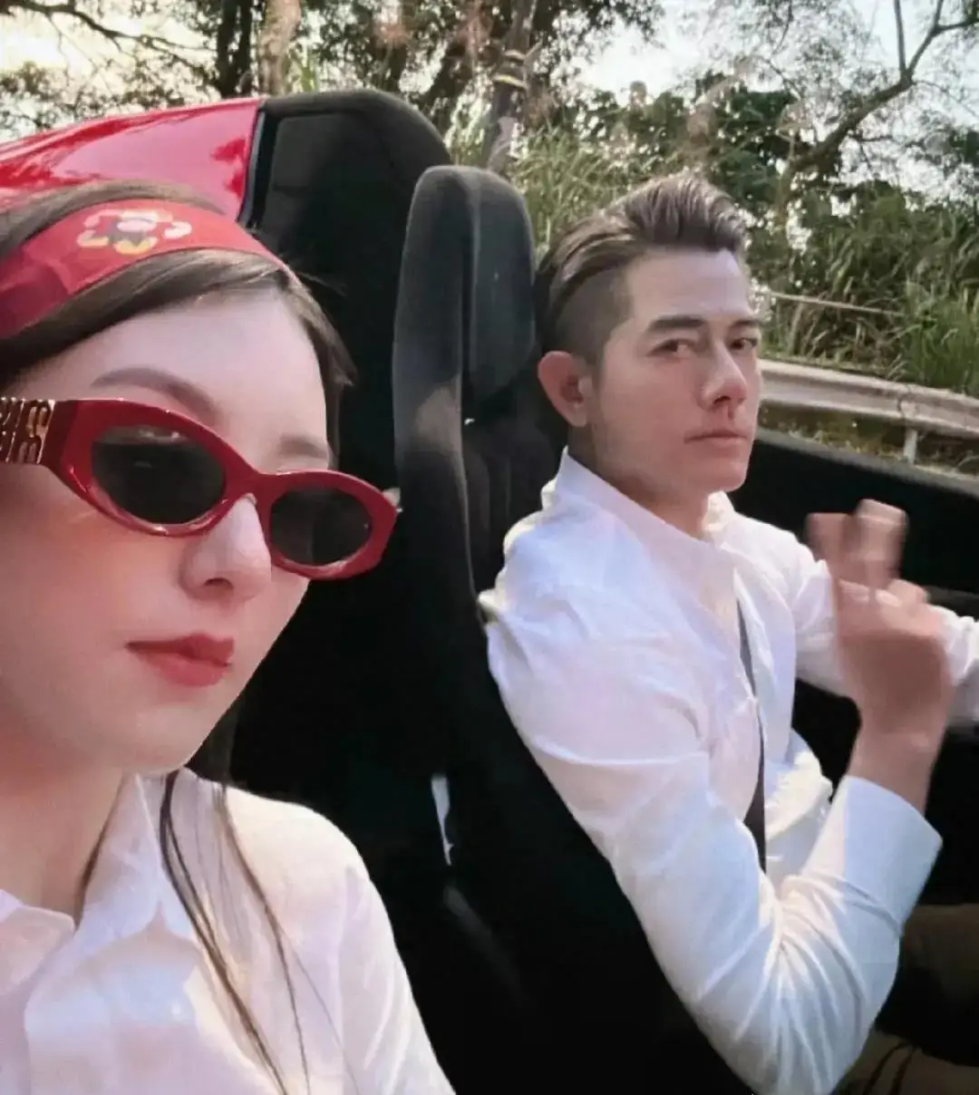 郭富城开敞篷车兜风,方媛坐副驾驶自拍,指甲又尖又长贵妇范十足