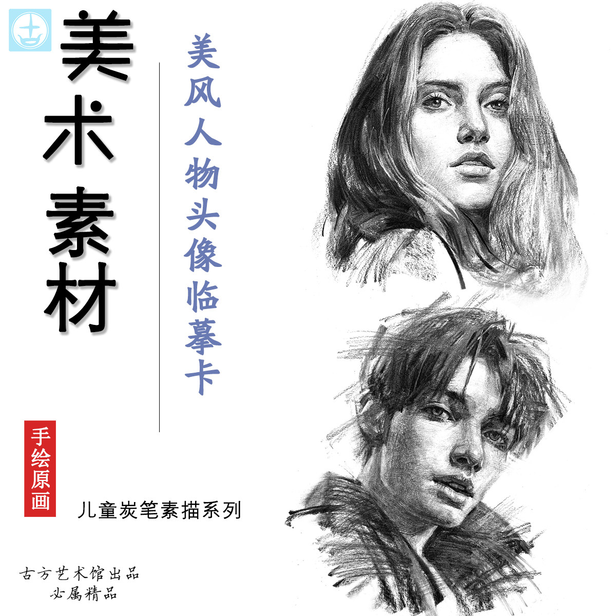 美风人物肖像潮流唯美易上手炭笔素描画临摹卡中小学画室学校范例