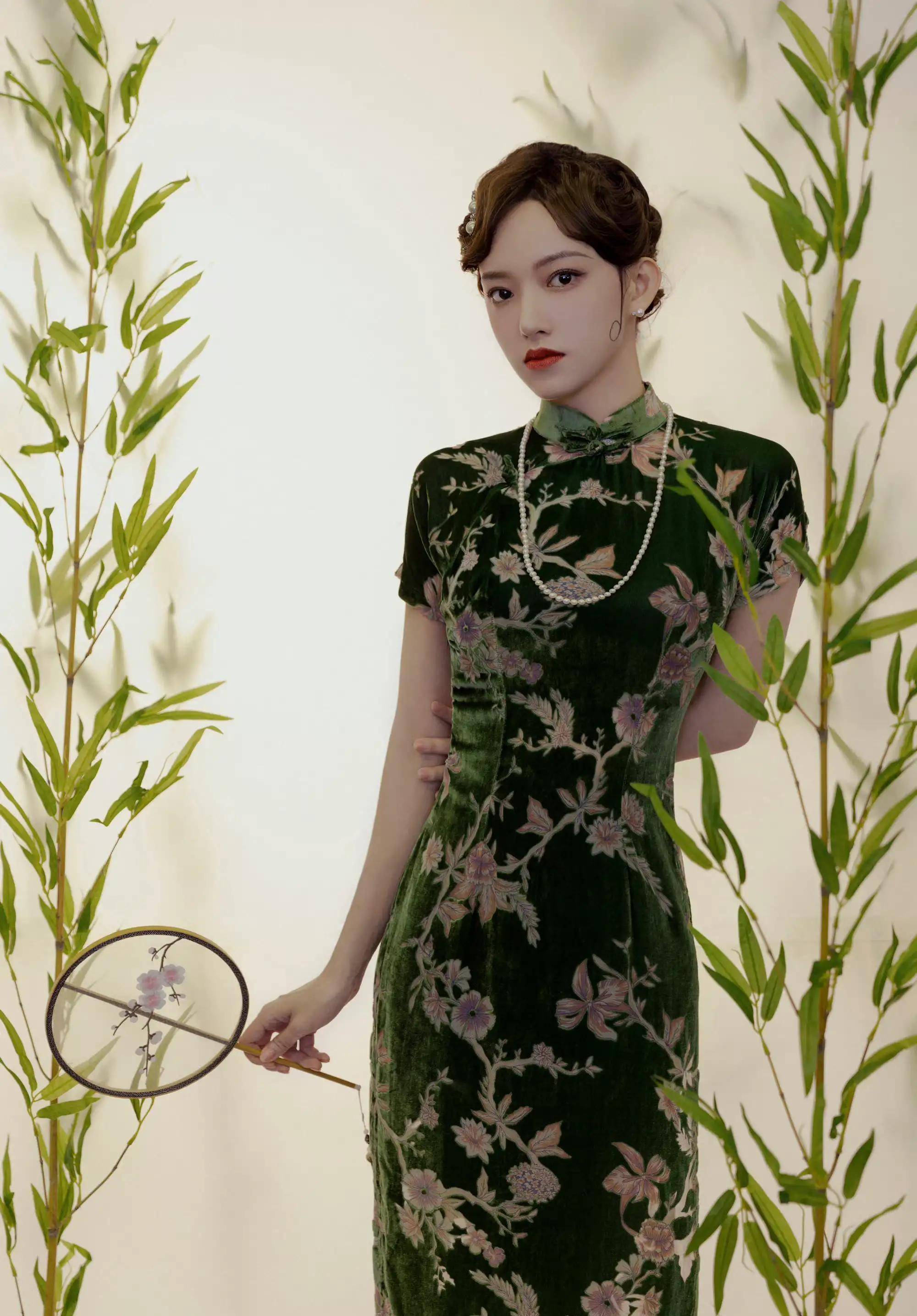 "人间芭比"程潇太辣了,穿着旗袍铺到腿底,前后都凸出来,惊艳_绿色