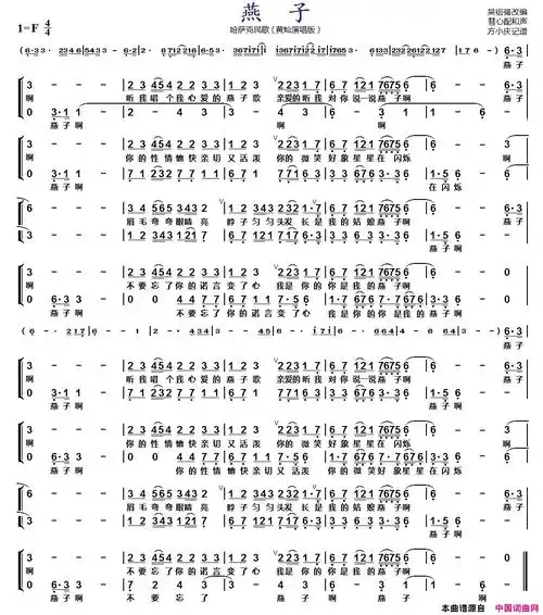 燕子哈萨克民歌,二重唱简谱-看乐谱网