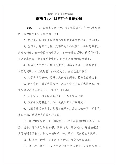 祝福自己生日的句子说说心情 导读:1,在我生日这一天,将快乐的音符
