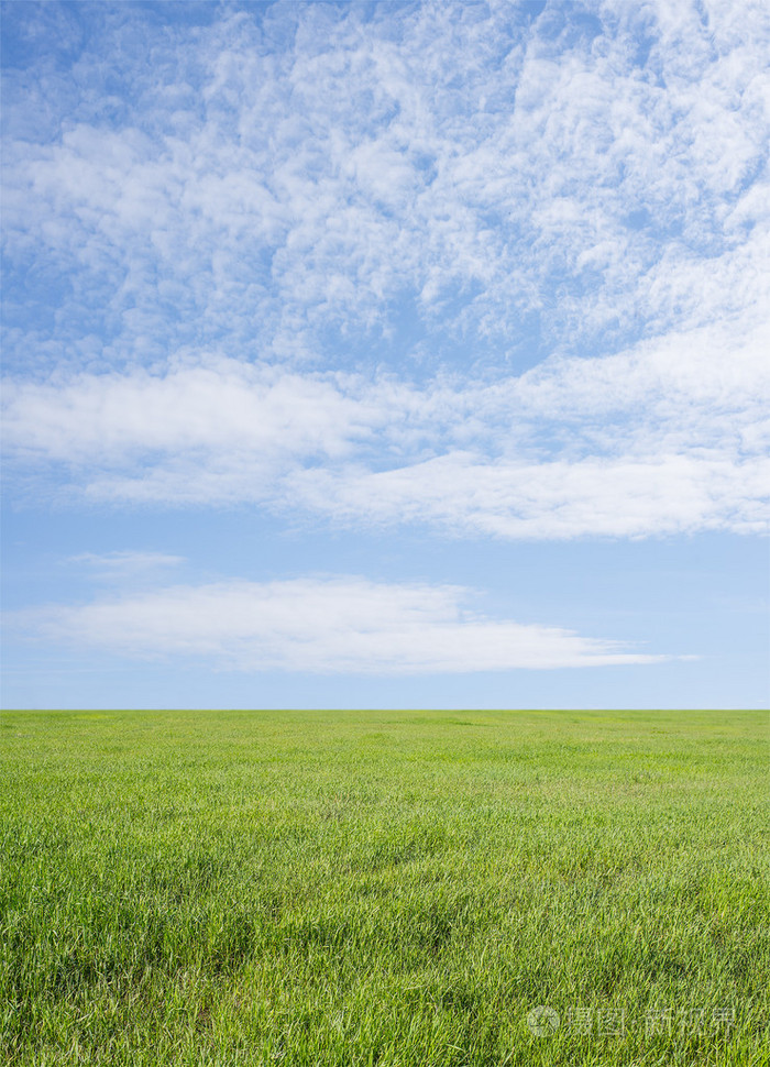 蓝天白云下的绿色草地高清图片素材