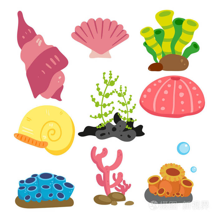 珊瑚矢量采集设计, 海洋植物矢量采集设计插画-正版商用图片05yq8a-摄