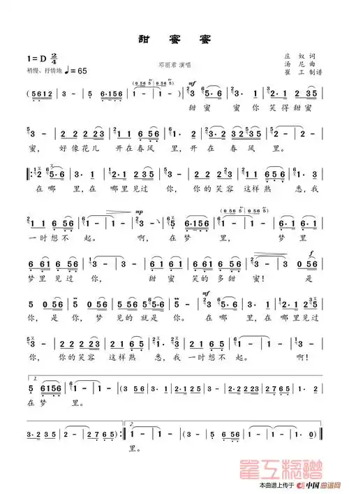 甜蜜蜜简谱-邓丽君-不愧为天籁之音1