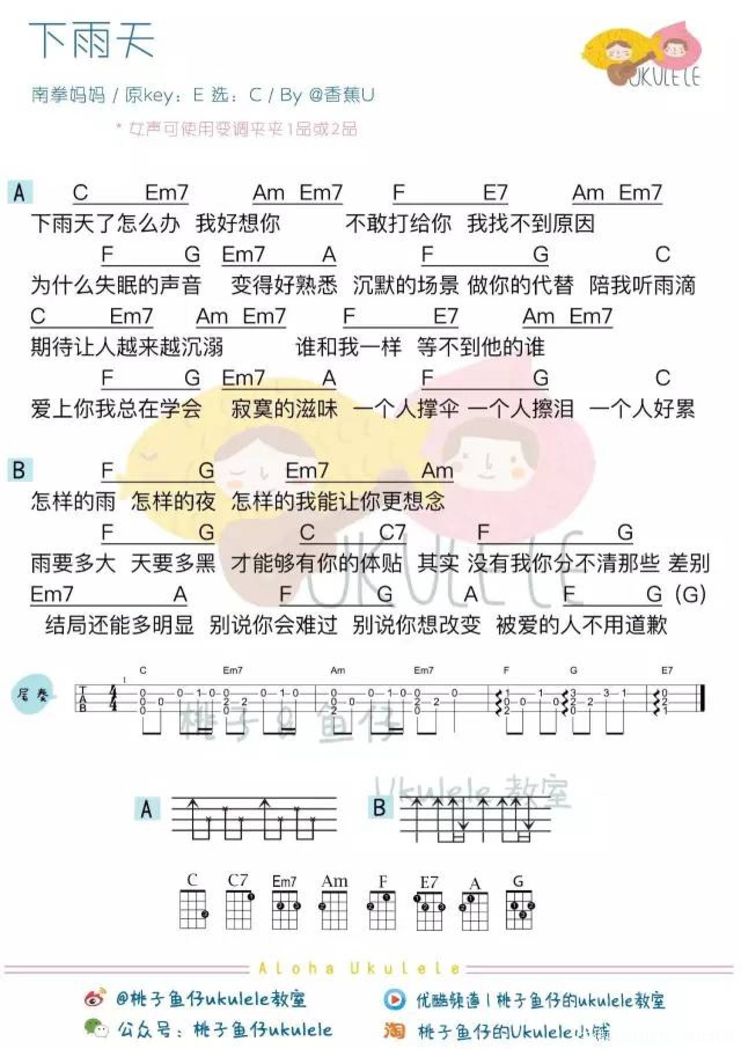 《下雨天》_c调尤克里里谱
