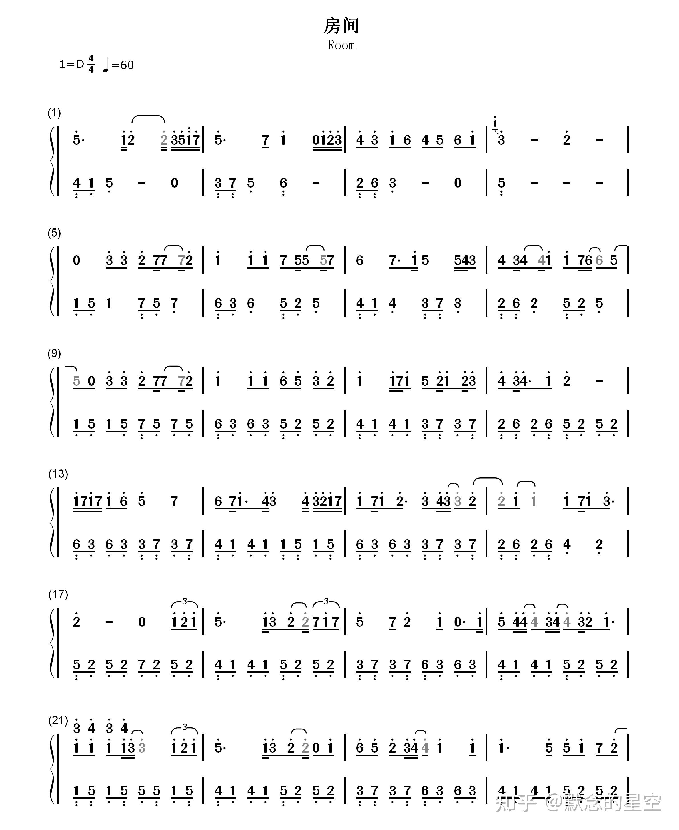 钢琴谱双手简谱双版本刘瑞琪房间