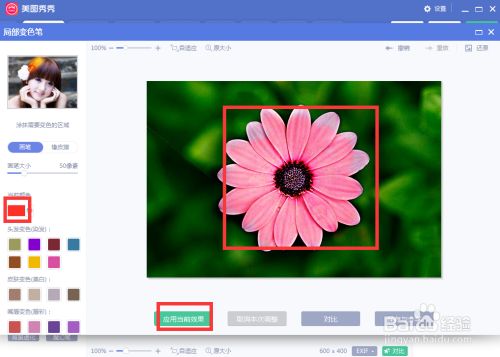 在美图秀秀中用局部变色笔修改花朵的颜色