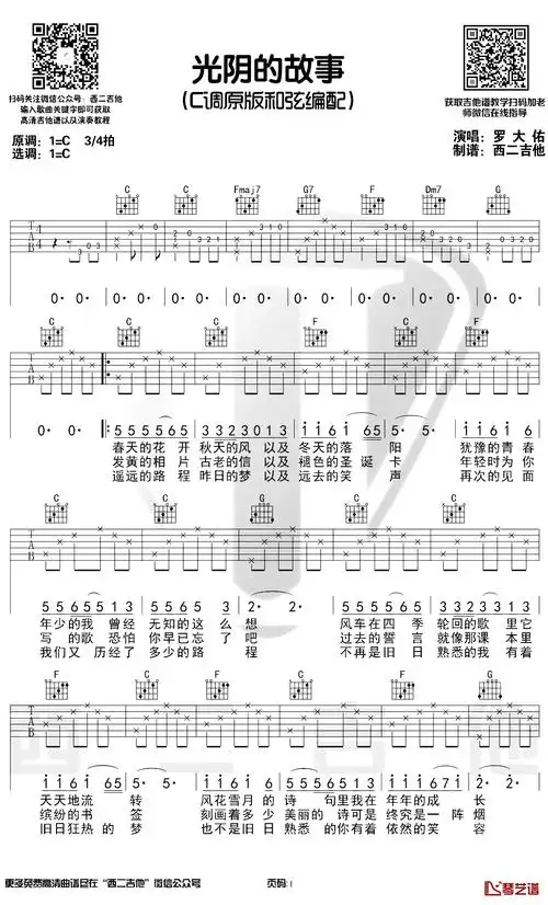 光阴的故事吉他谱罗大佑c调原版弹唱谱教学演示视频