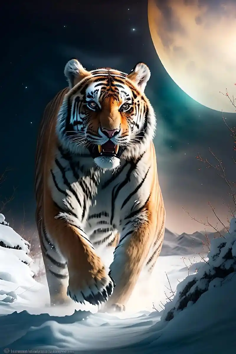 凶猛的东北虎在飞奔!#ai绘画 #kk画廊 #百兽之王老虎 - 抖音