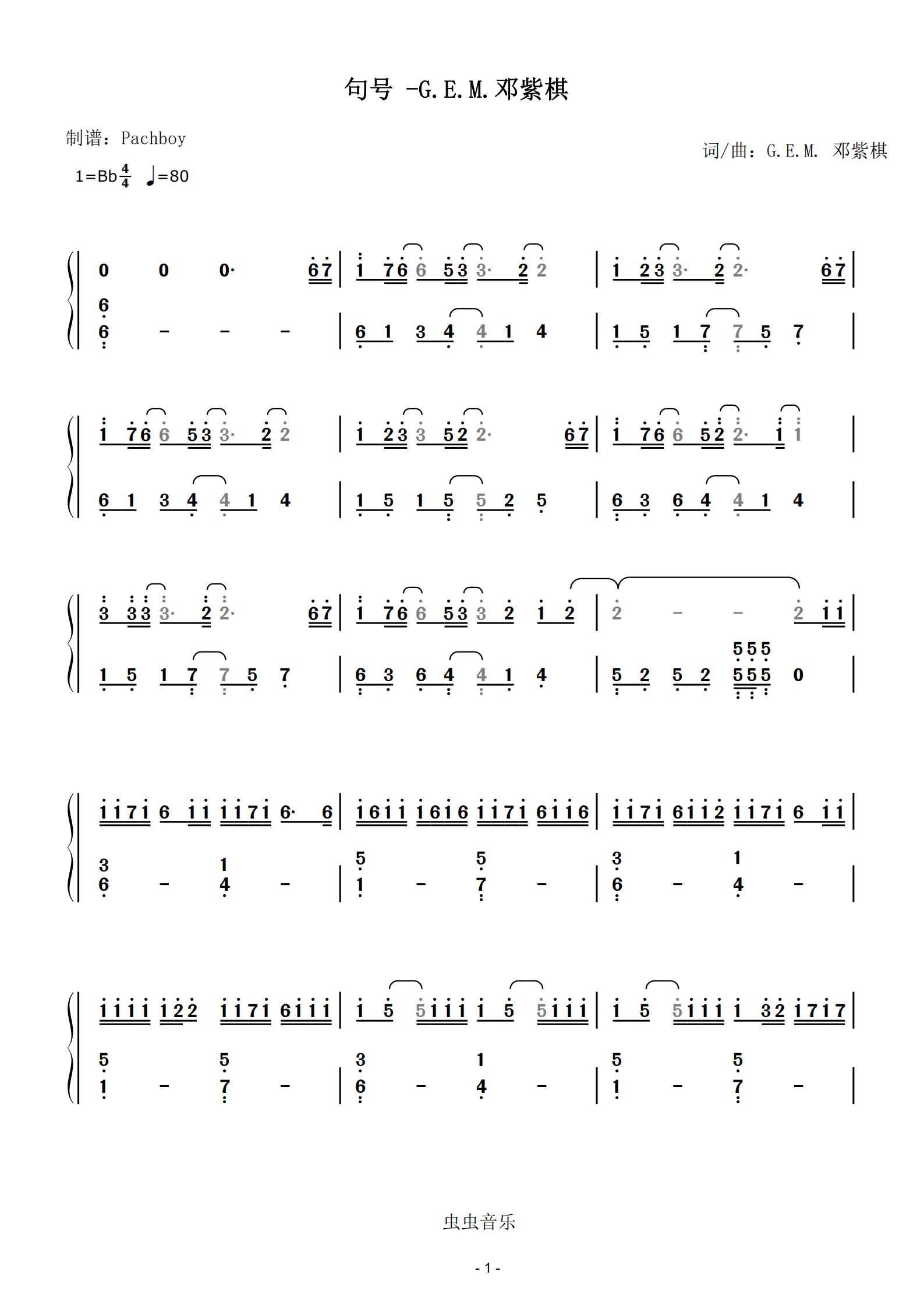 吉他谱 华语女歌手 邓紫棋 句号请登录虫虫 谱