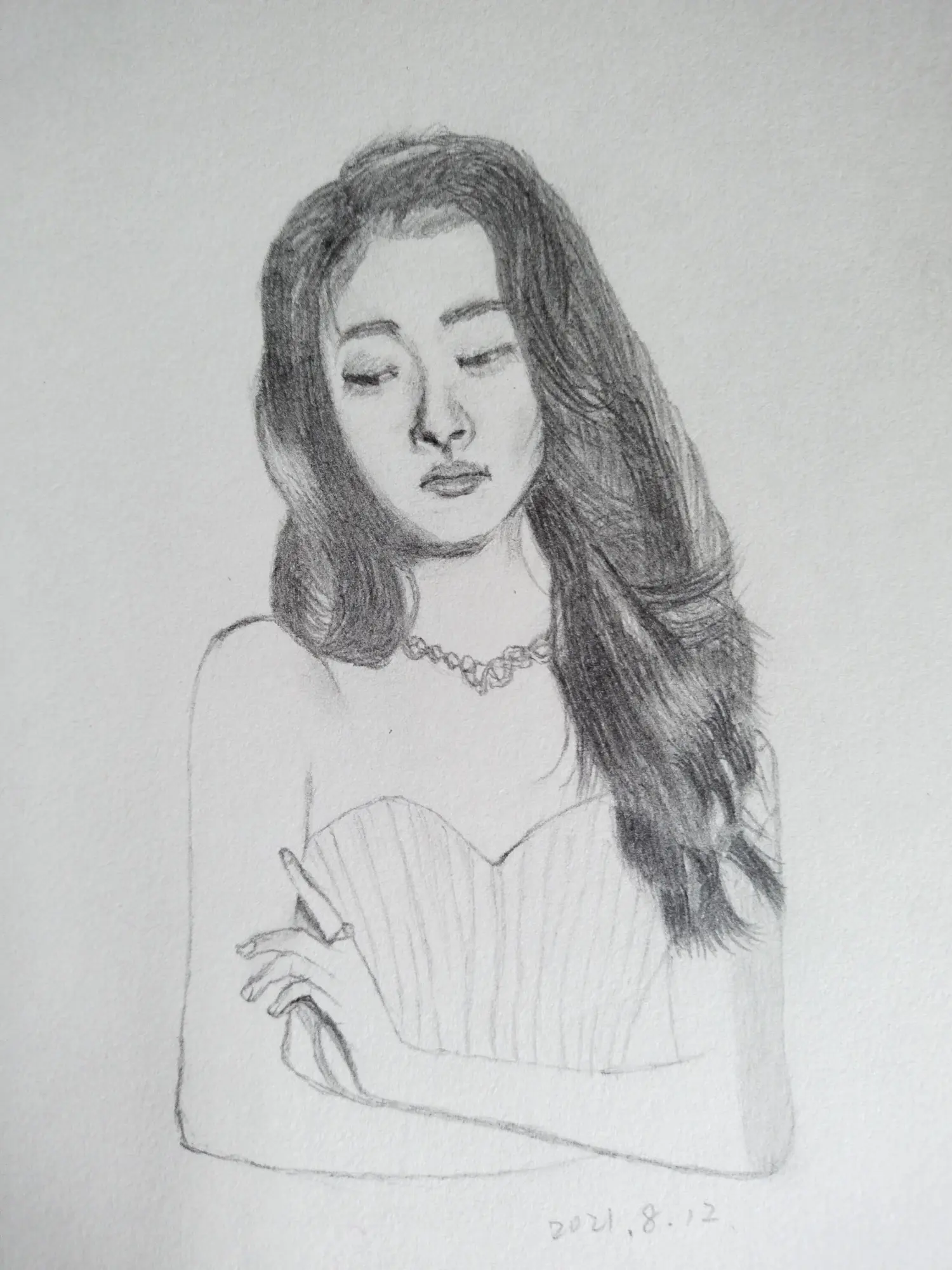 彩铅美女肖像画---叶青(过程)