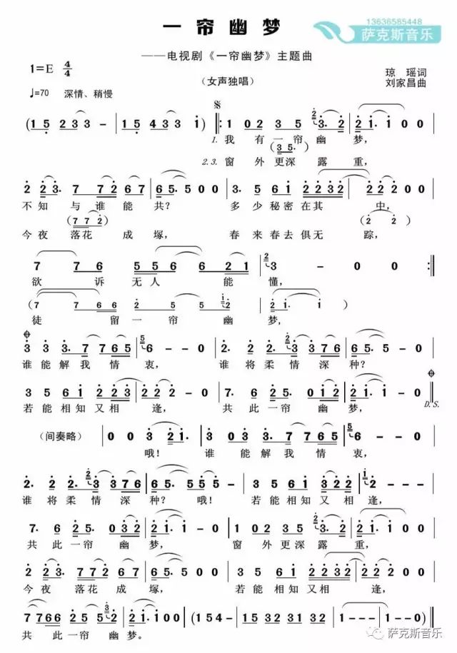 一帘幽梦(同名电影主题曲)_一帘幽梦(同名电影主题曲)简谱_一帘幽梦