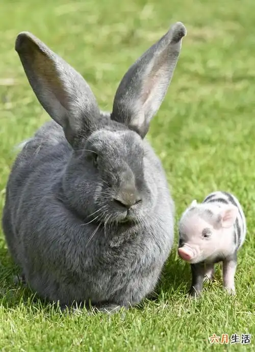罕见巨兔和小猪结下深厚友谊 上演猪兔传奇(组图)