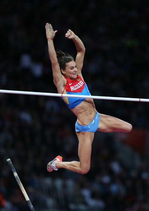当日,在伦敦奥运会田径女子撑杆跳高决赛中,俄罗斯选手伊辛巴耶娃 44