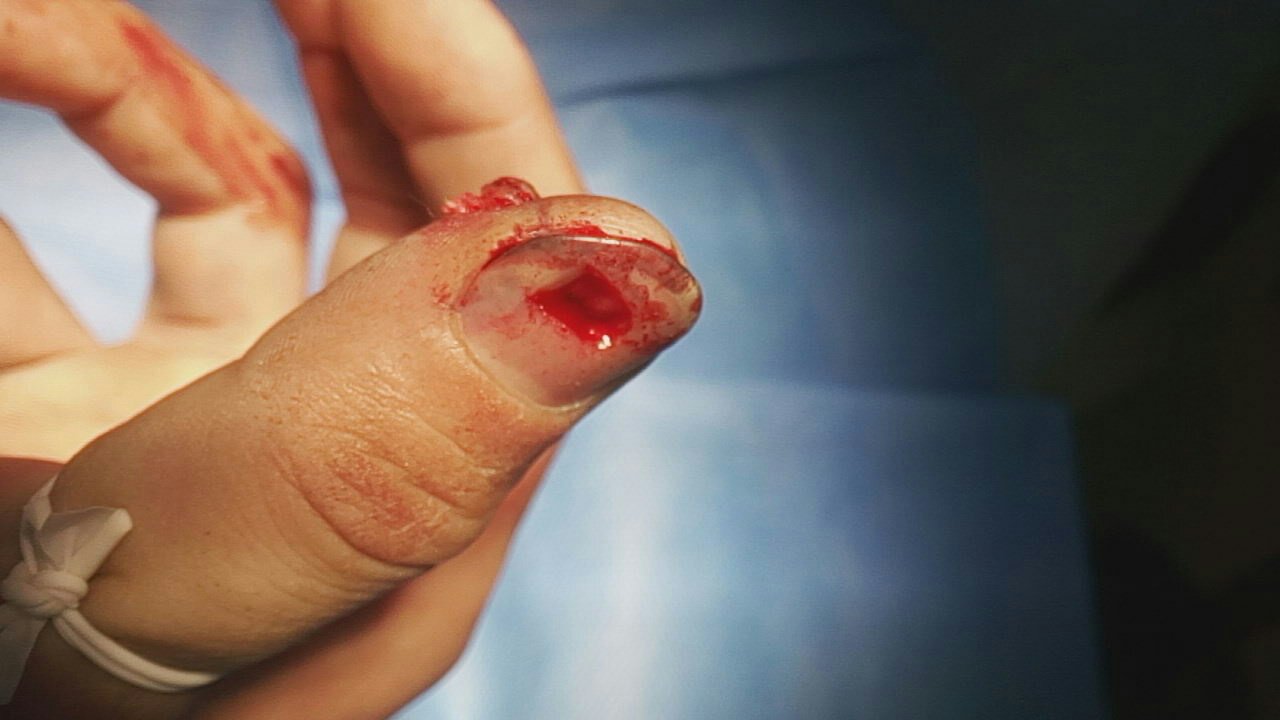 骨一科于凌晨一点收入一名患者,58岁,工地干活时被钢管砸伤致右手示指