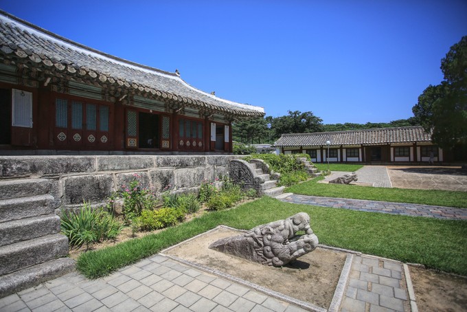 成均馆内古木参天,据说有的已有近千年的树龄.