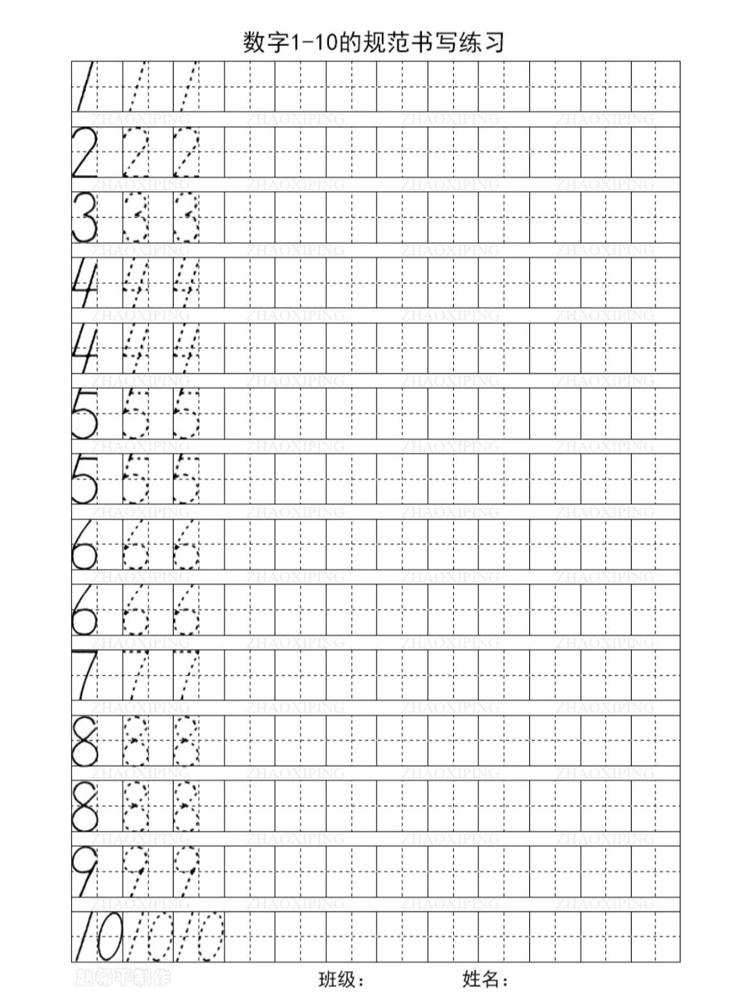 数字1-10规范书写练习