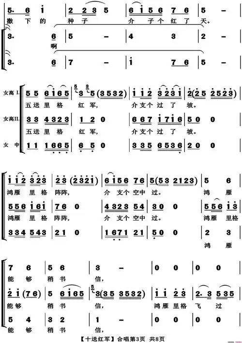 十送红军(合唱)_歌谱简谱_哆来咪123曲谱网