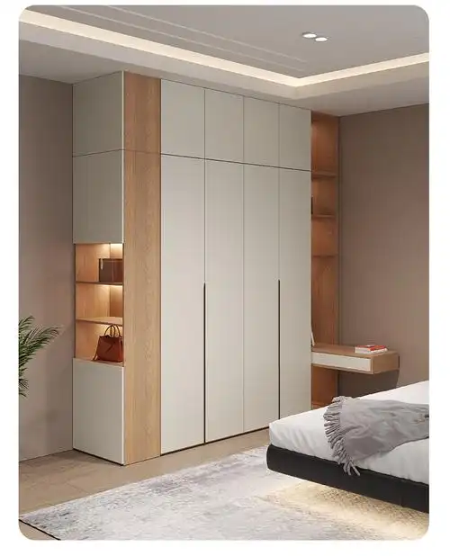 衣柜床头柜一体转角 简约现代卧室实木衣柜带床头柜一体侘寂风梳妆台