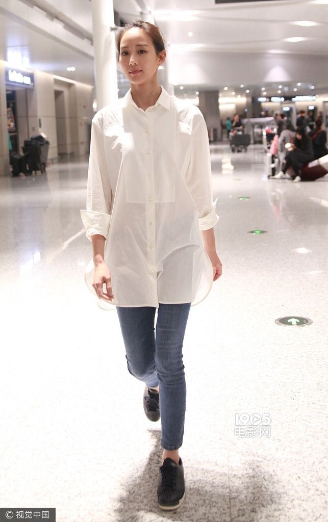 37岁张钧甯走机场穿搭随性没想秀身材奈何牛仔裤自带长腿效果
