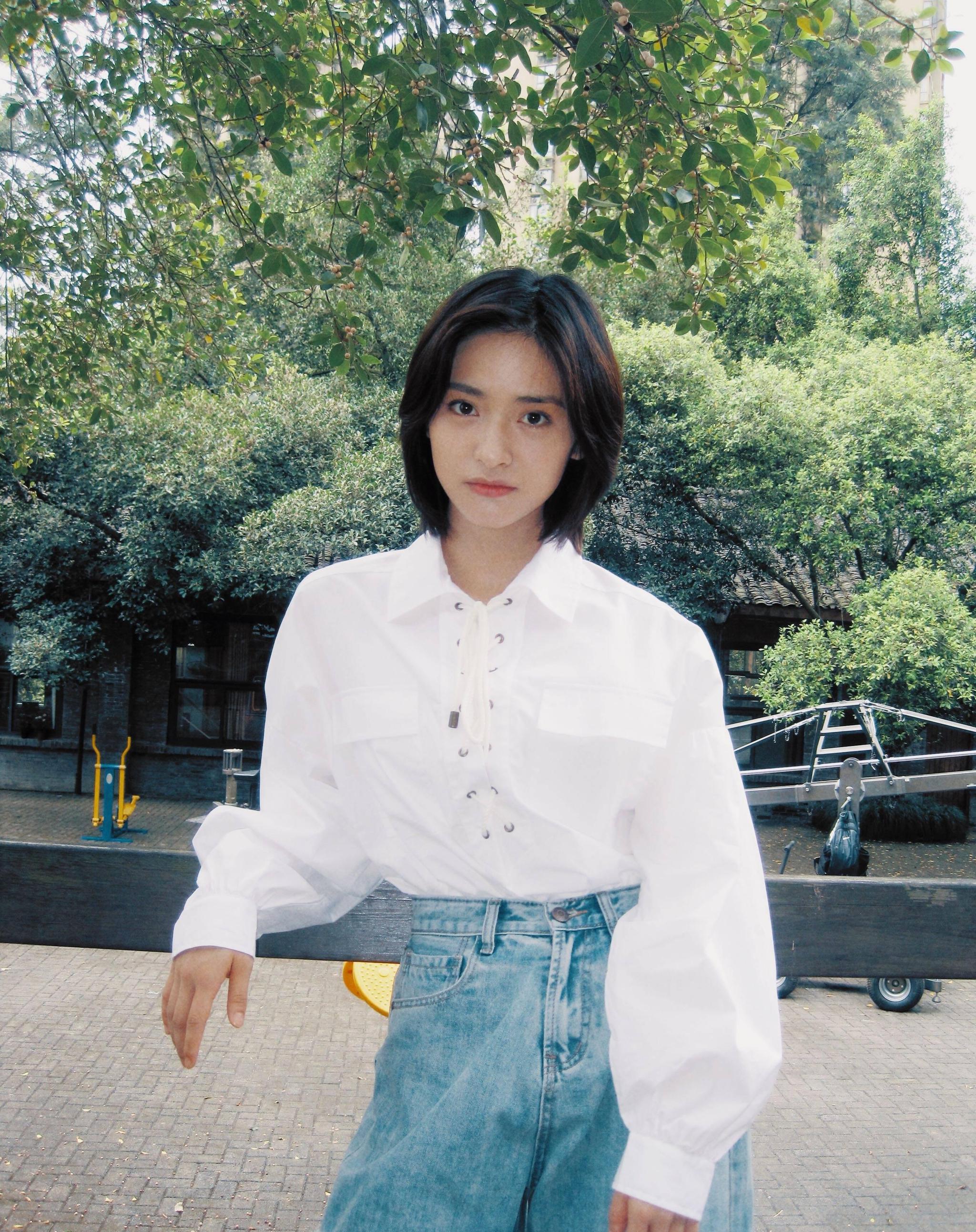 沈月一组时尚写真,作为新生代校花日系少女,清纯短发加上露齿笑