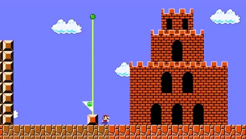超级玛丽会有很多关卡,而通关的标志就是玛丽兄弟跳到旗杆上进入城堡