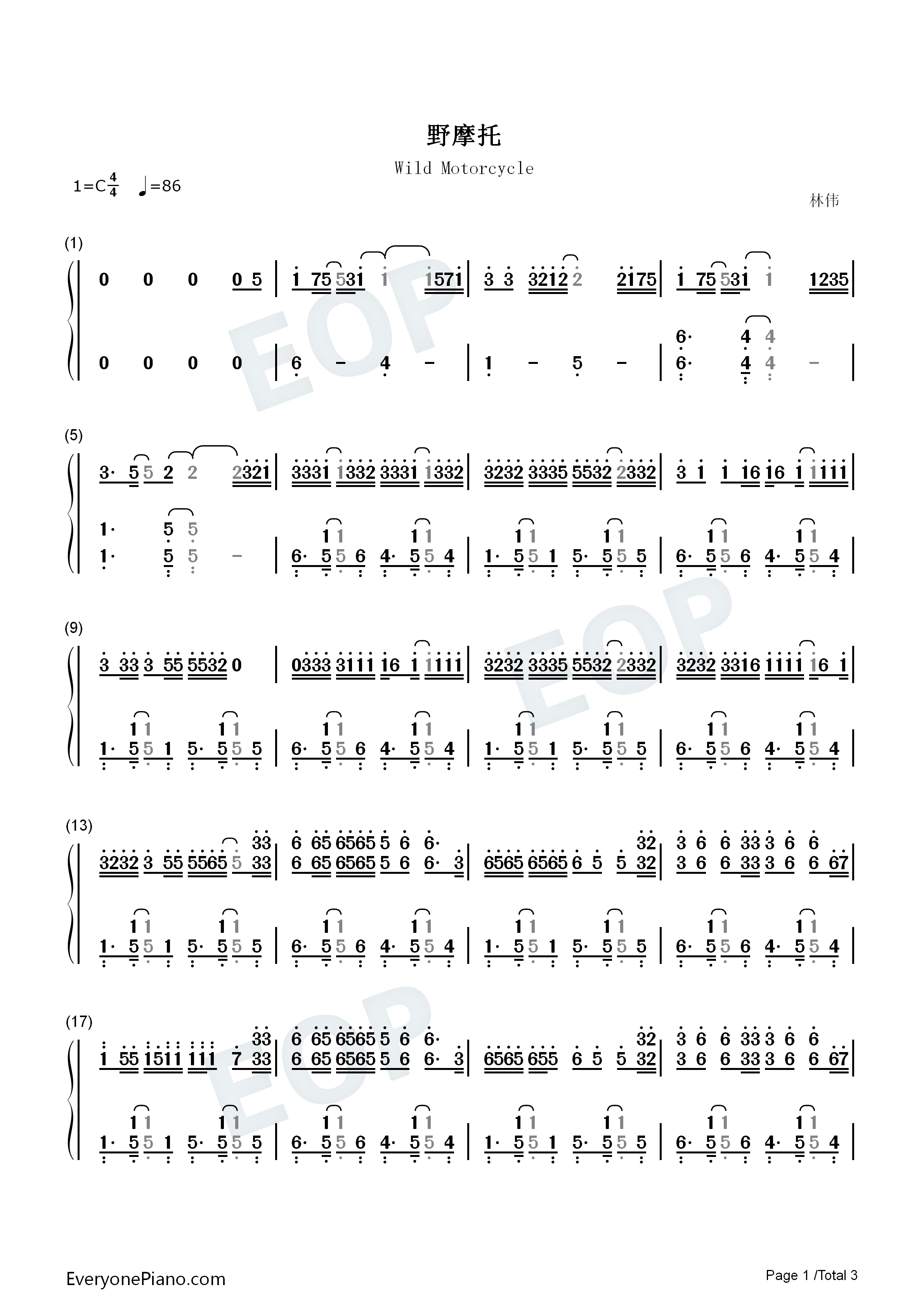野摩托-原版-我想邀请你坐上我的野摩托-抖音五线谱预览6
