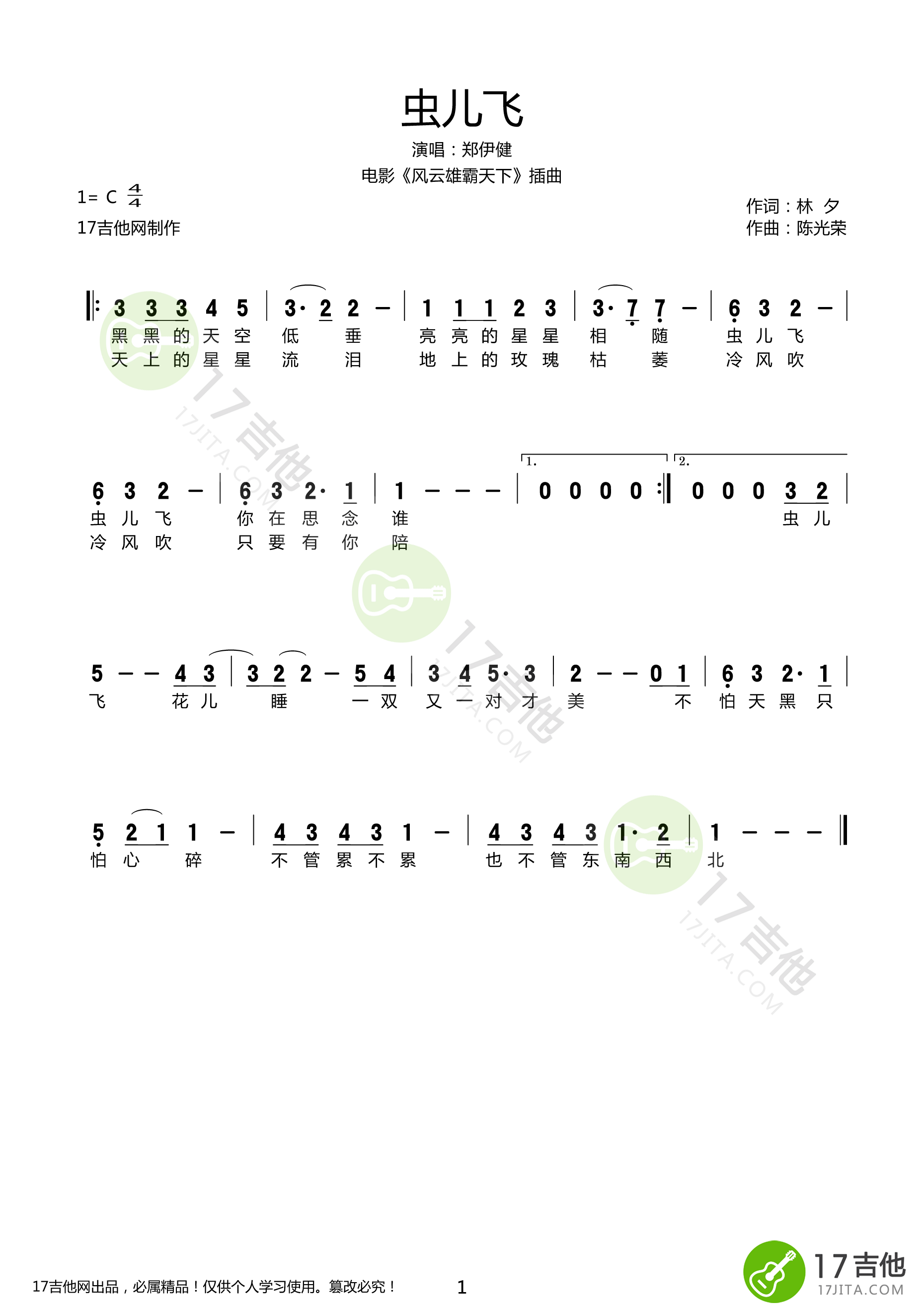 虫儿飞简谱-儿歌-你以为这首就是正儿八经的儿歌了1