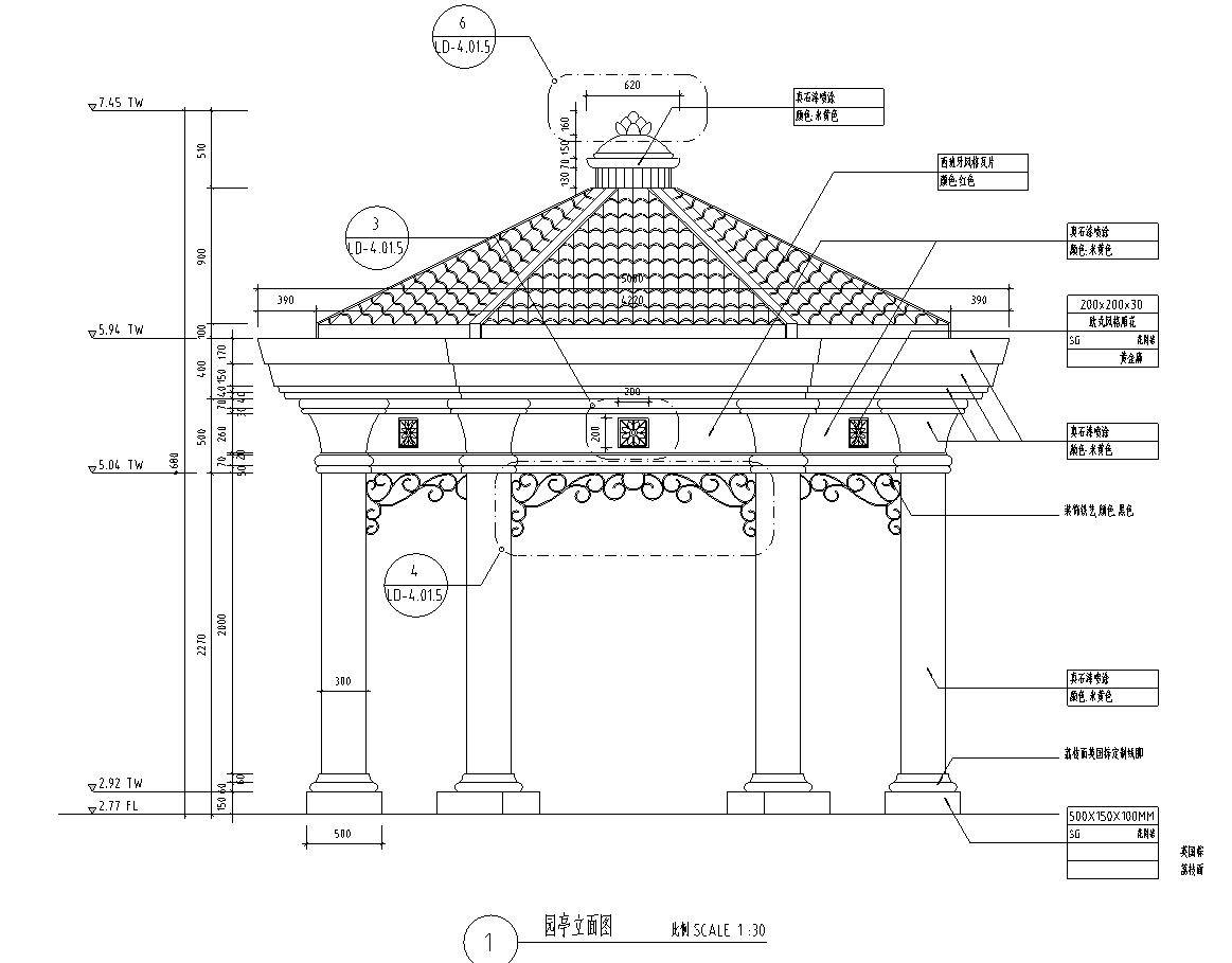 六角亭子cad文档电子版精品六柱构架尖顶平立2d