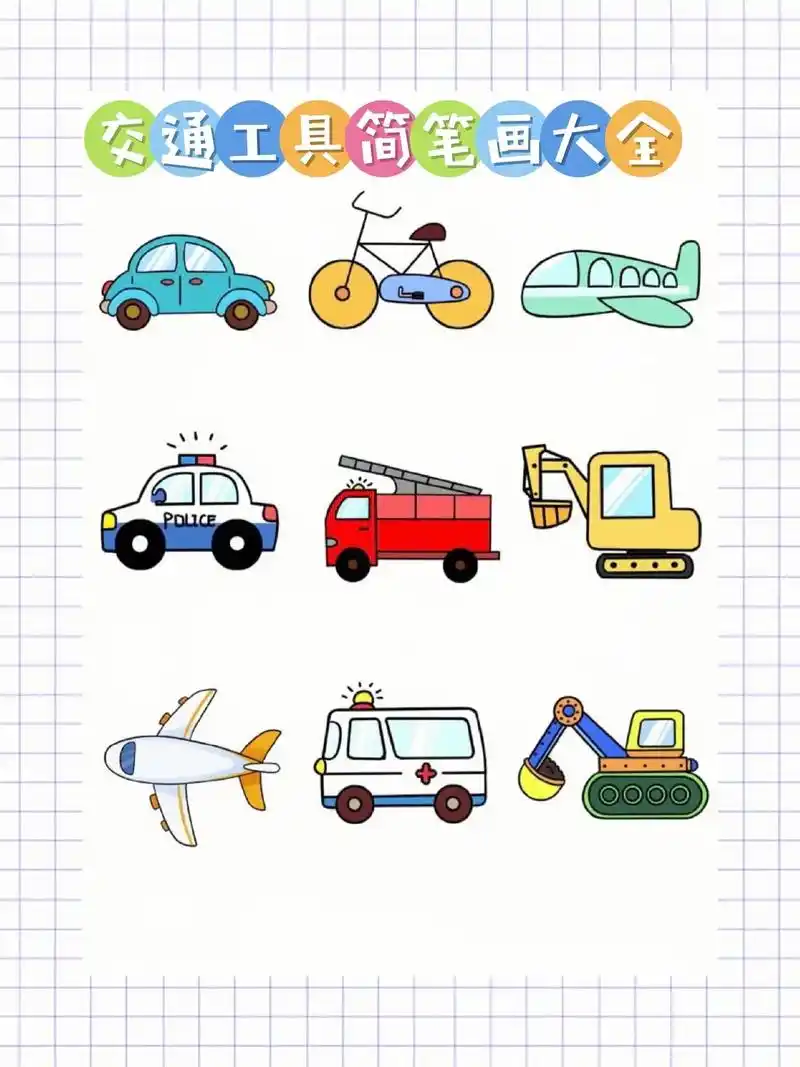 交通工具简笔画:小汽车简笔画,飞机简笔画.火车简笔画,轮船简 - 抖音
